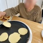 1人ひとり、混ぜて、ホットプレートで焼いていきます。