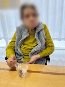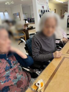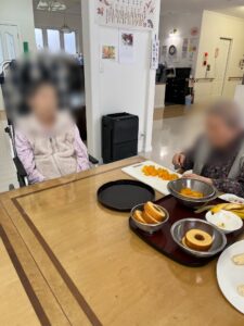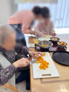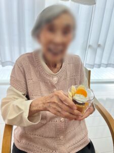 おやつ作りにチャレンジ! 2025年12月1日 ブログ 木洩れ陽では、おやつのパフェ作り!😀 フルーツやバウムクーヘンをカットしたら‥お好きなトッピングを お一人お一人に選んでいただいて。さあ!いただきま〜す😋 木洩れ陽の皆様が大好きな「あんこ」を入れたことが本日のポイントです😋 「こんなに綺麗に出来ましたね」とT様も笑顔です🥰 味も良し!見た目も良し!大成功ですね! 「🍠お菓子作り🍠」